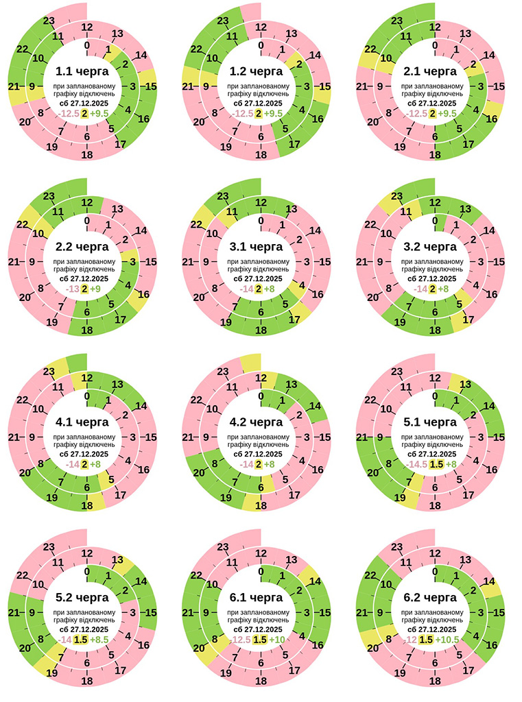 У Полтавській області 27 грудня 2025 року на Полтавщині буде застосовано графік погодинного відключення електроенергії.