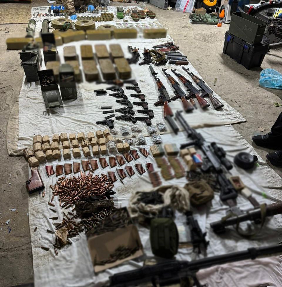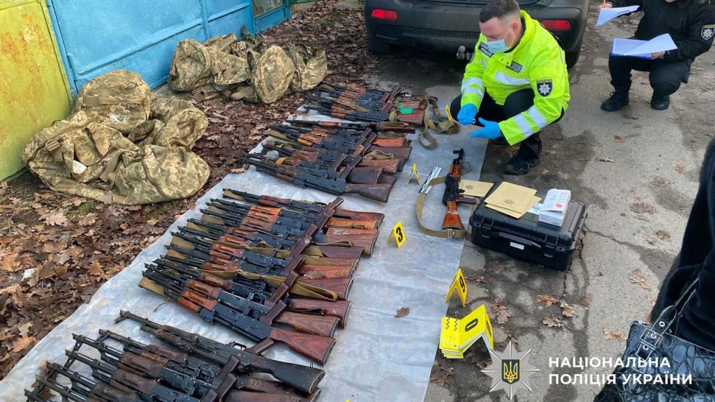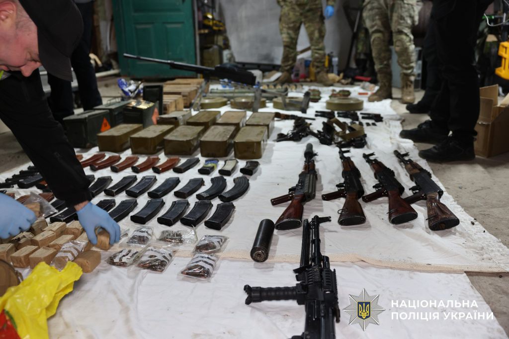 За силової підтримки спецпідрозділу КОРД та у взаємодії з поліцією Києва й Полтавщини проведено низку санкціонованих обшуків у столиці, Полтаві та на Київщині. Під час заходів правоохоронці виявили схрон зброї: 48 автоматів Калашникова, 26 пістолетів Макарова, 4 кулемети, 8 одиниць іншої нарізної вогнепальної зброї, 4 гранатомети та 31 постріл до гранатометів, 8 мін, 76 гранат, майже 26 000 набоїв різного калібру, запали, підривачі, детонатори, майже 21 кілограм вибухівки, глушники, димові шашки, багнет-ножі, споряджені магазини. Крім того, вилучено понад 3 тисячі євро готівки та автомобіль.