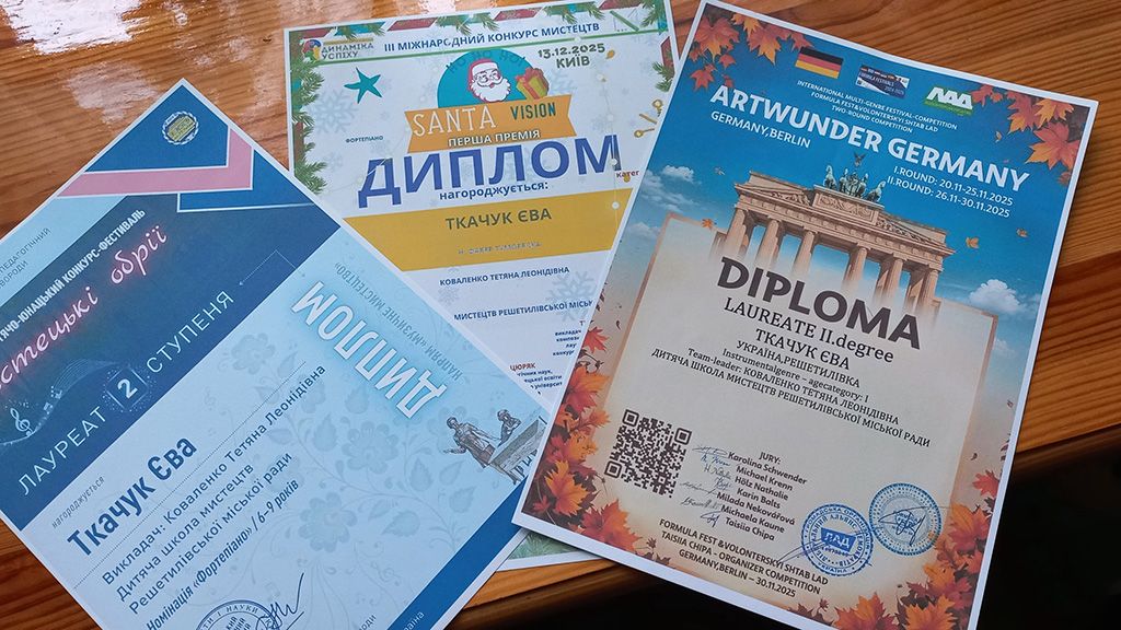 Фортепіанний дует Соловйова Вікторія – Ткачук Вероніка, добре знаний у Решетилівці, поповнив колекцію нагород дипломами І ступеня на конкурсах Stars of Canada, Hello, Switzerland, JazzFiesta 2025 та «Мистецькі обрії». На останньому фестивалі дівчата отримали ще й спеціальну відзнаку журі — приз «Надія».