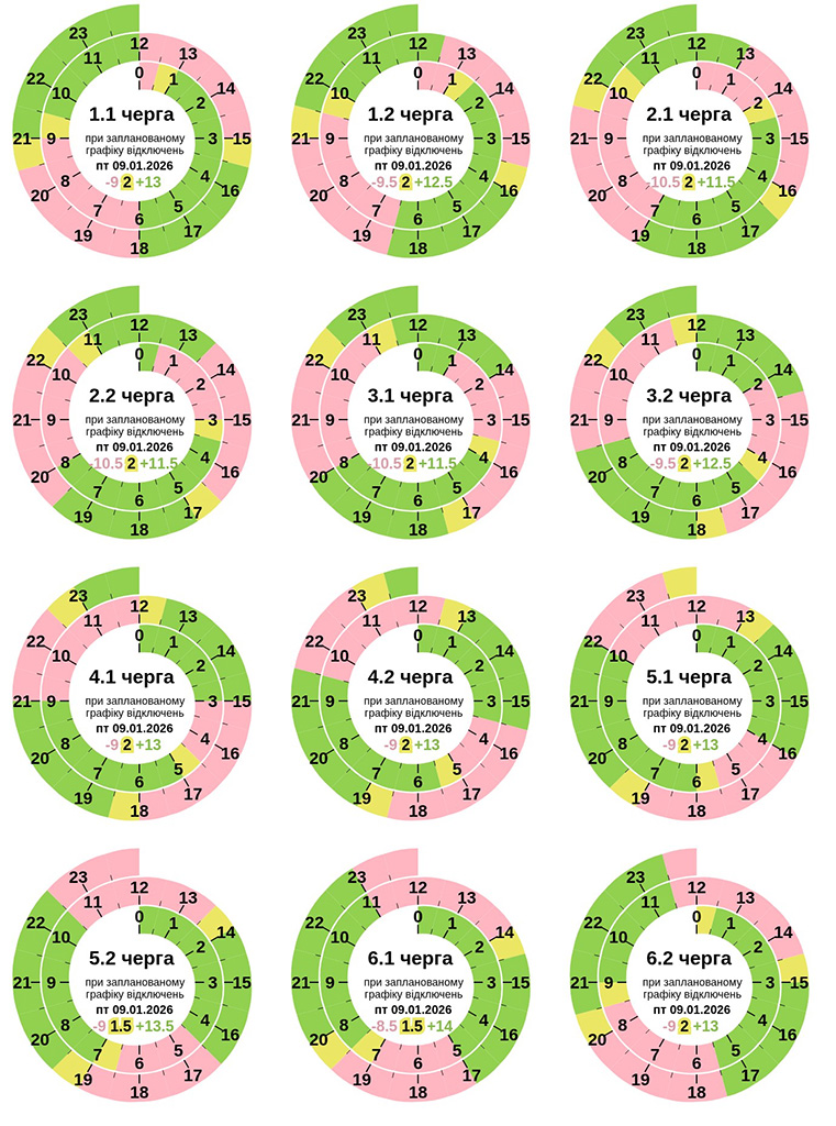 Графік погодинного відключення електроенергії на Полтавщині 9 січня
