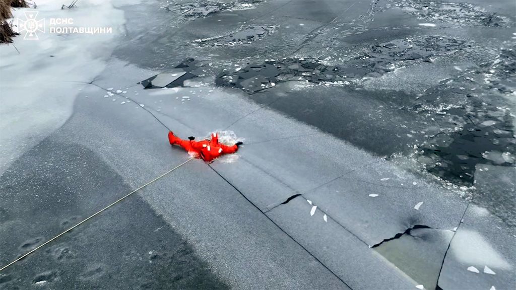 У Полтаві рятувальники провели тренування з порятунку людини, яка провалилася під кригу. Під час навчань надзвичайники продемонстрували, що пересування льодом у нинішніх погодних умовах є ризикованим, адже кожен необережний крок може стати фатальним.