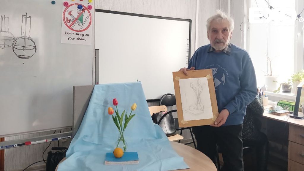 Микола Єрьомка вже двічі змінював місце проживання через російську агресію. Спочатку він переїхав із Єнакієвого до Бахмута, а потім — у Білики. Але професійний художник незмінно займається улюбленою справою — малює сам і вчить цьому мистецтву інших.