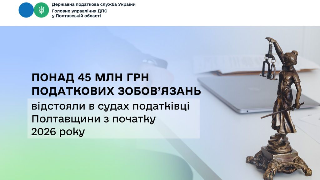 Понад 45 млн грн податкових зобов’язань відстояли в судах податківці Полтавщини з початку 2026 року