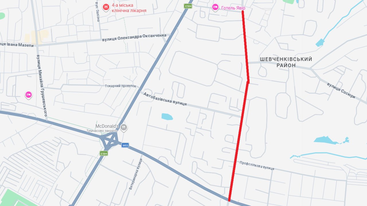 У місті обмежено рух транспорту на ділянці від перехрестя вул. Володимира В’язуна та вул. Гостомельської до вул. Харківське шосе. Просимо враховувати це під час пересування.