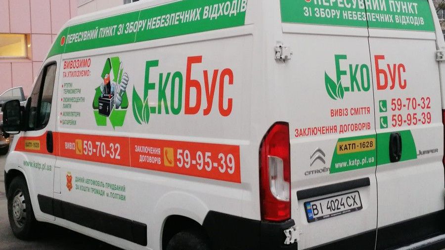 У Полтаві працює мобільний пункт збору небезпечних відходів — екобус. Він приймає лише ті речі, які не можна викидати до звичайного смітника: батарейки, ртутні термометри, люмінесцентні лампи, акумулятори від мобільних телефонів та прострочені ліки.