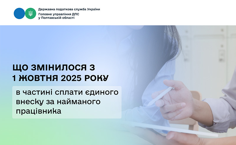 Головне управління ДПС у Полтавській області інформує, що Законом України від 16 липня 2025 року № 4536-IX «Про внесення змін до Податкового кодексу України та інших законодавчих актів України у зв’язку з прийняттям Закону України «Про інтегроване запобігання та контроль промислового забруднення» та за метою удосконалення окремих положень податкового законодавства» (далі – Закон № 4536) передбачені наступні зміни в частині сплати єдиного внеску на загальнообов’язкове державне соціальне страхування (далі – єдиний внесок) за найманого працівника.